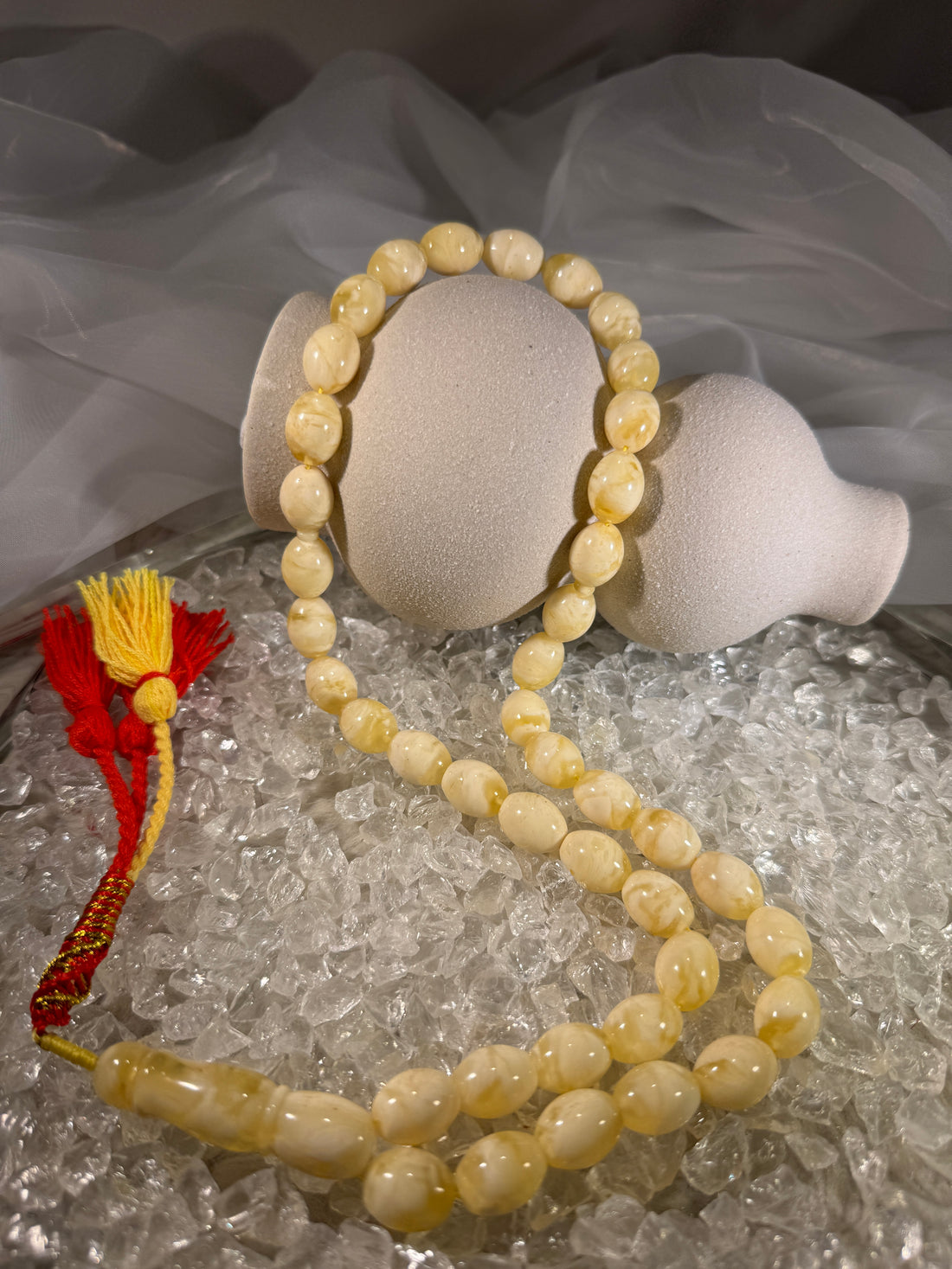 Natural Baltic Amber Prayer Beads – White & Yellow Olive Shape