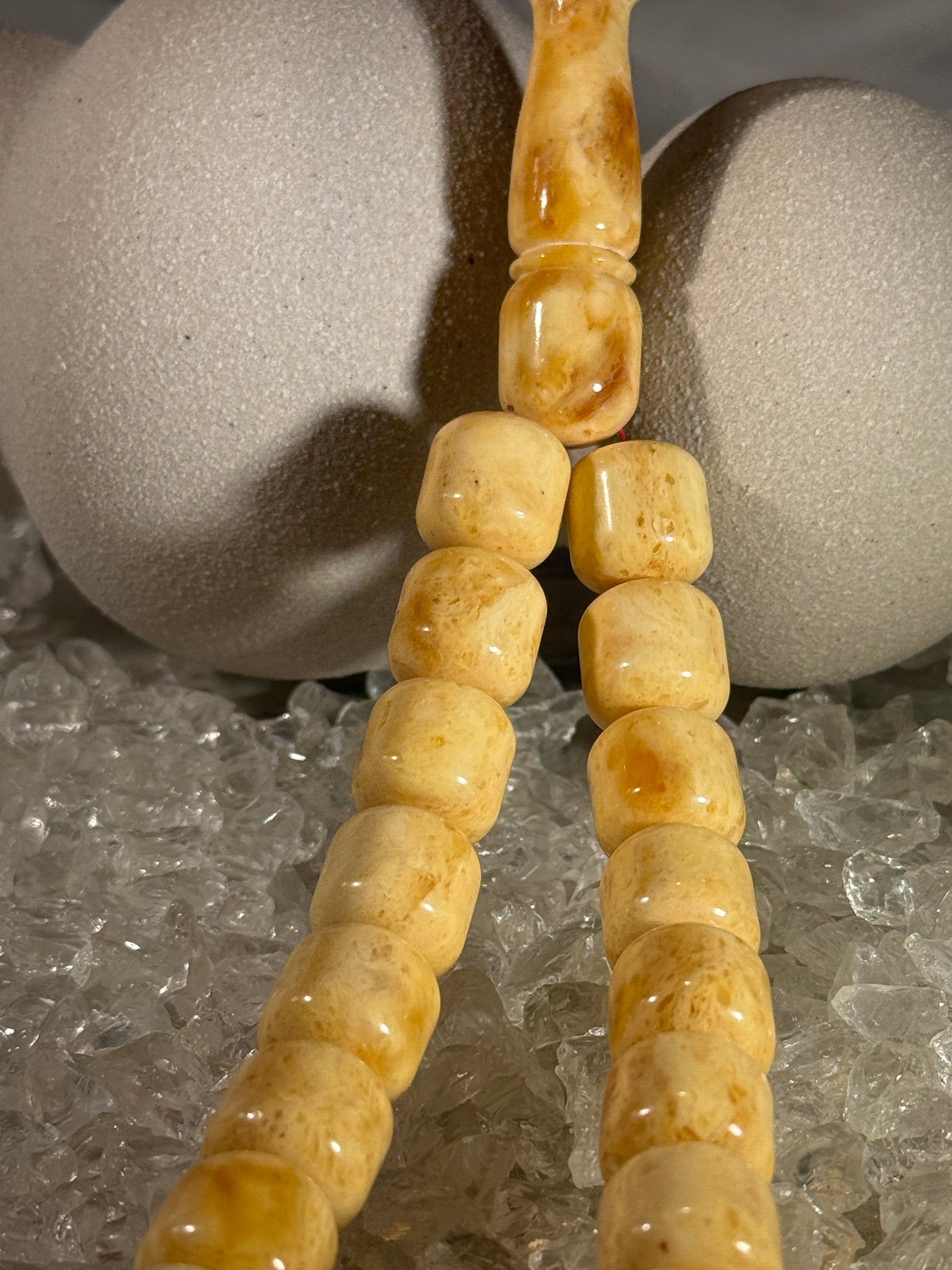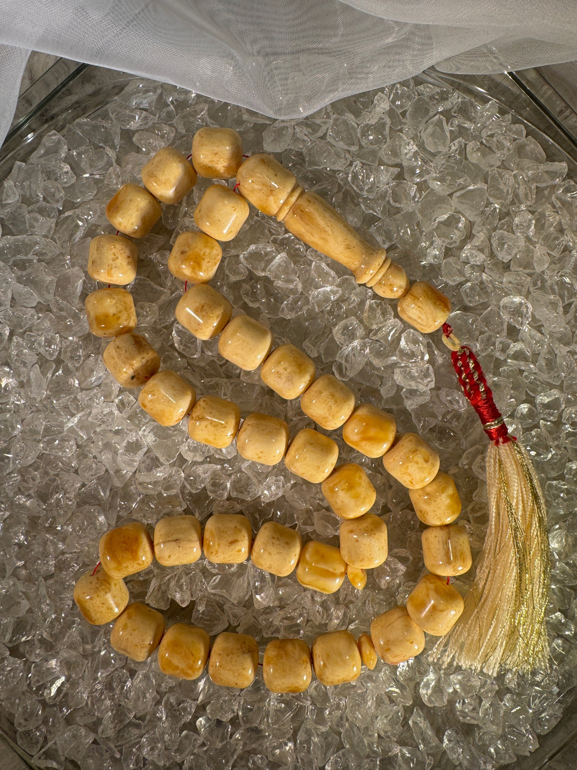 This exquisite misbaha is crafted from rare Butterscotch “White Tiger” amber sourced from Kaliningrad. Each bead features natural marbling and a smooth polish, making it a stunning collector’s piece as well as a spiritual companion. Perfect for prayer, meditation, or as a unique luxury gift.