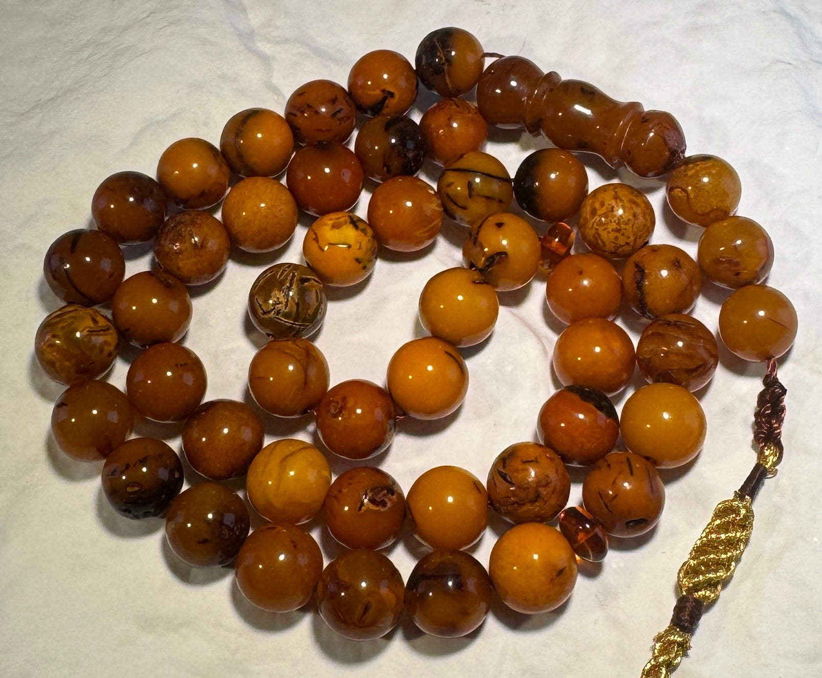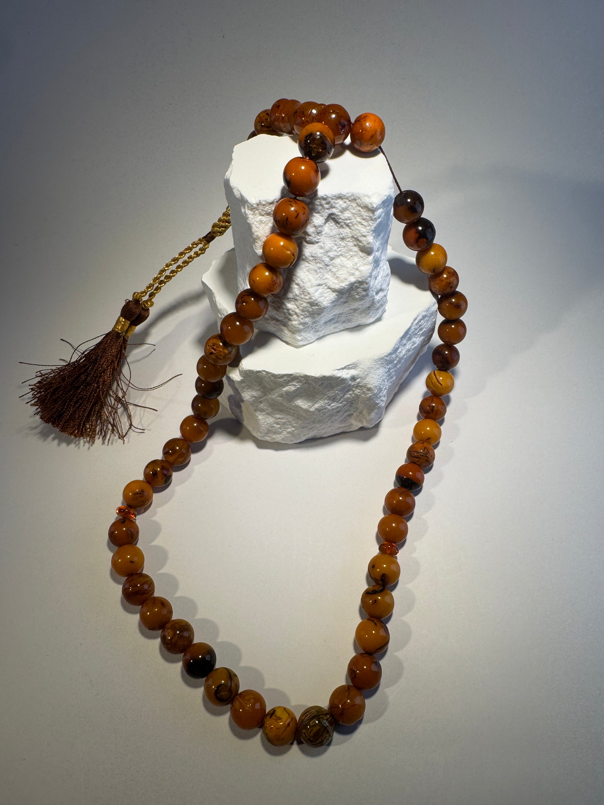 Antique Style Amber Tasbih – 45+3 Beads Handmade Misbaha