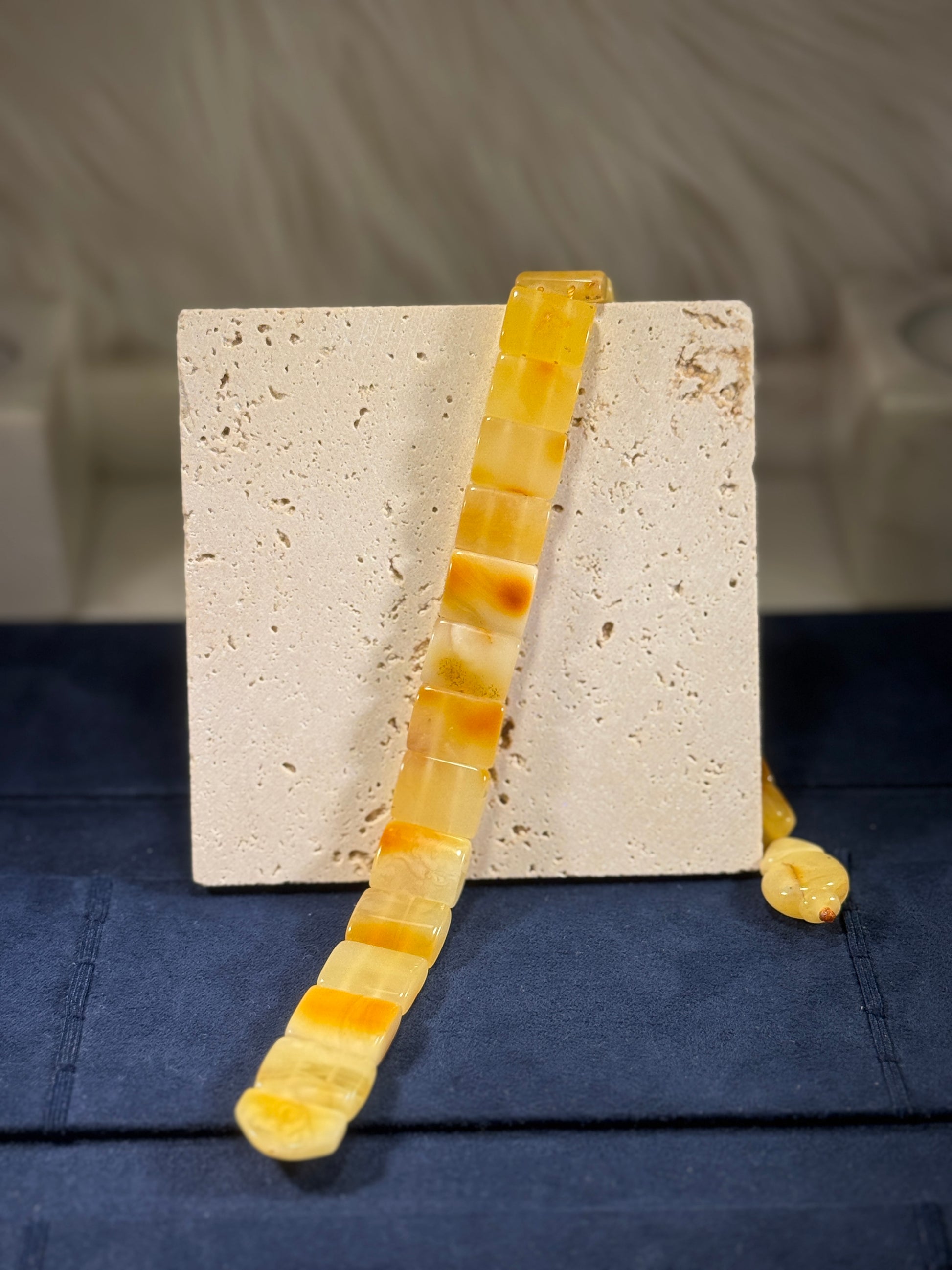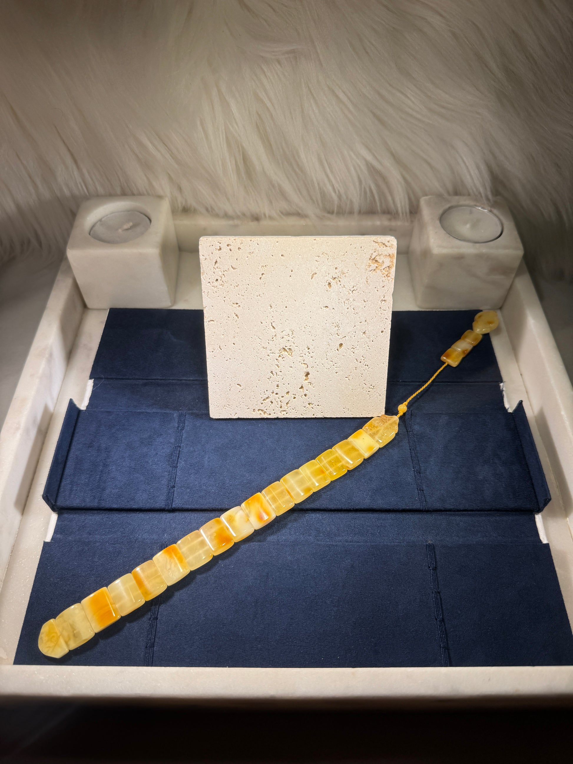 A striking example of traditional craftsmanship, this handcrafted Greek misbah is made from 100% natural Baltic amber, shaped into a rare square-cut design. Each bead boasts deep golden honey tones, rich natural textures, and subtle variations that reflect the organic origin of the amber. Lightweight and comfortable in hand, this tasbih is designed for those who value elegance in their spiritual practice.