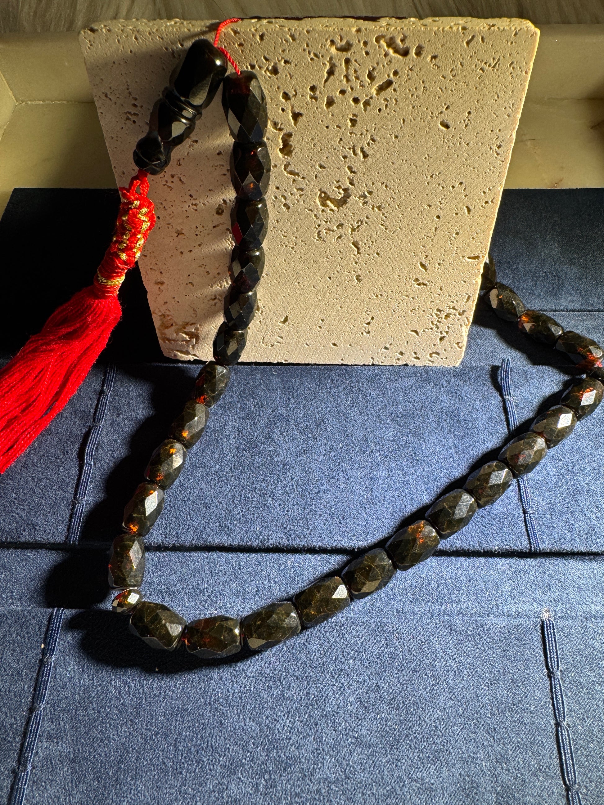 This luxurious Macintosh Russian Amber Masbaha is handcrafted with 33 faceted beads measuring 10x15mm, offering a perfect balance between elegance and comfort. Weighing 35 grams, this masbaha is ideal for daily dhikr or as a thoughtful Islamic gift.
