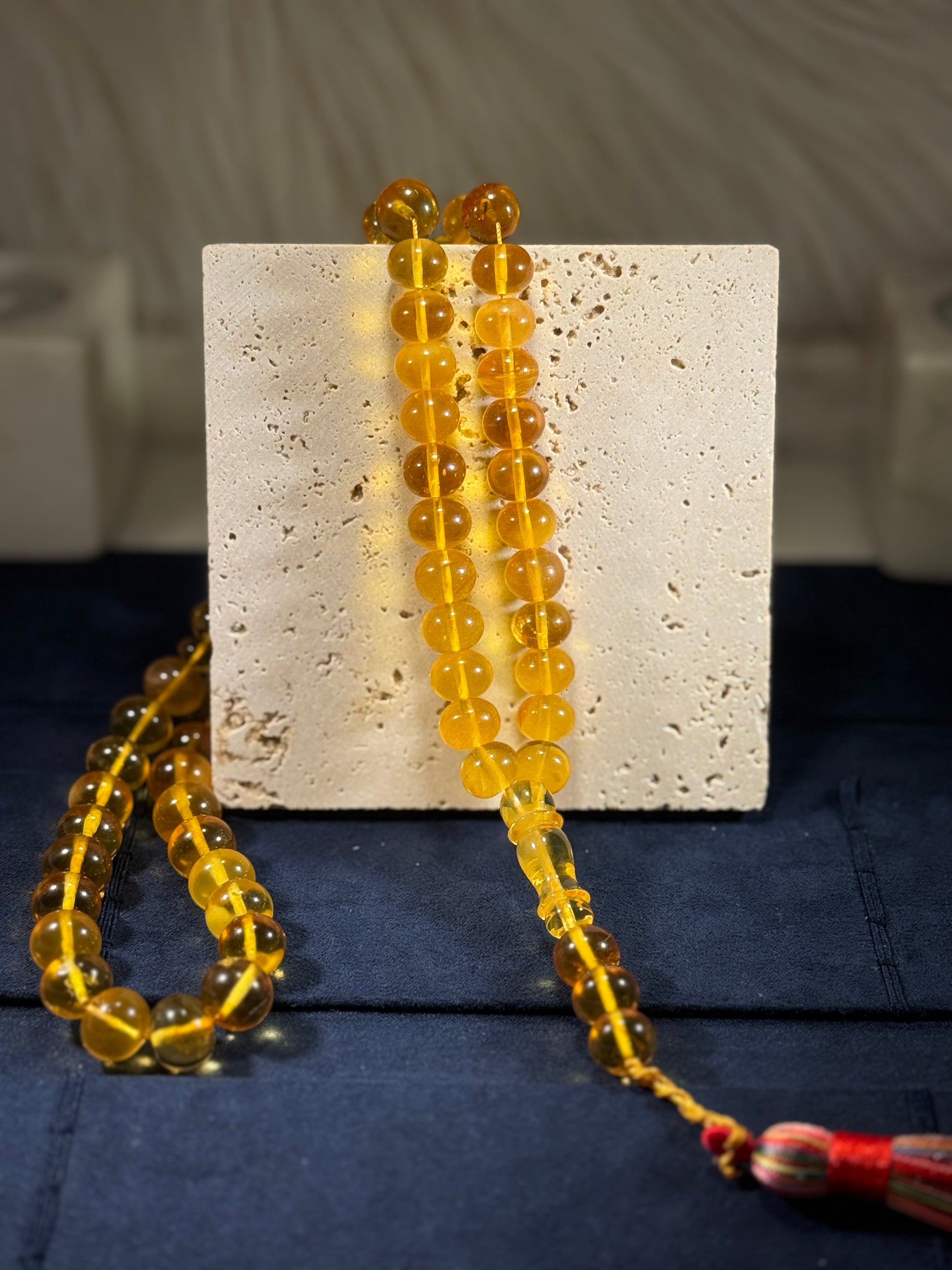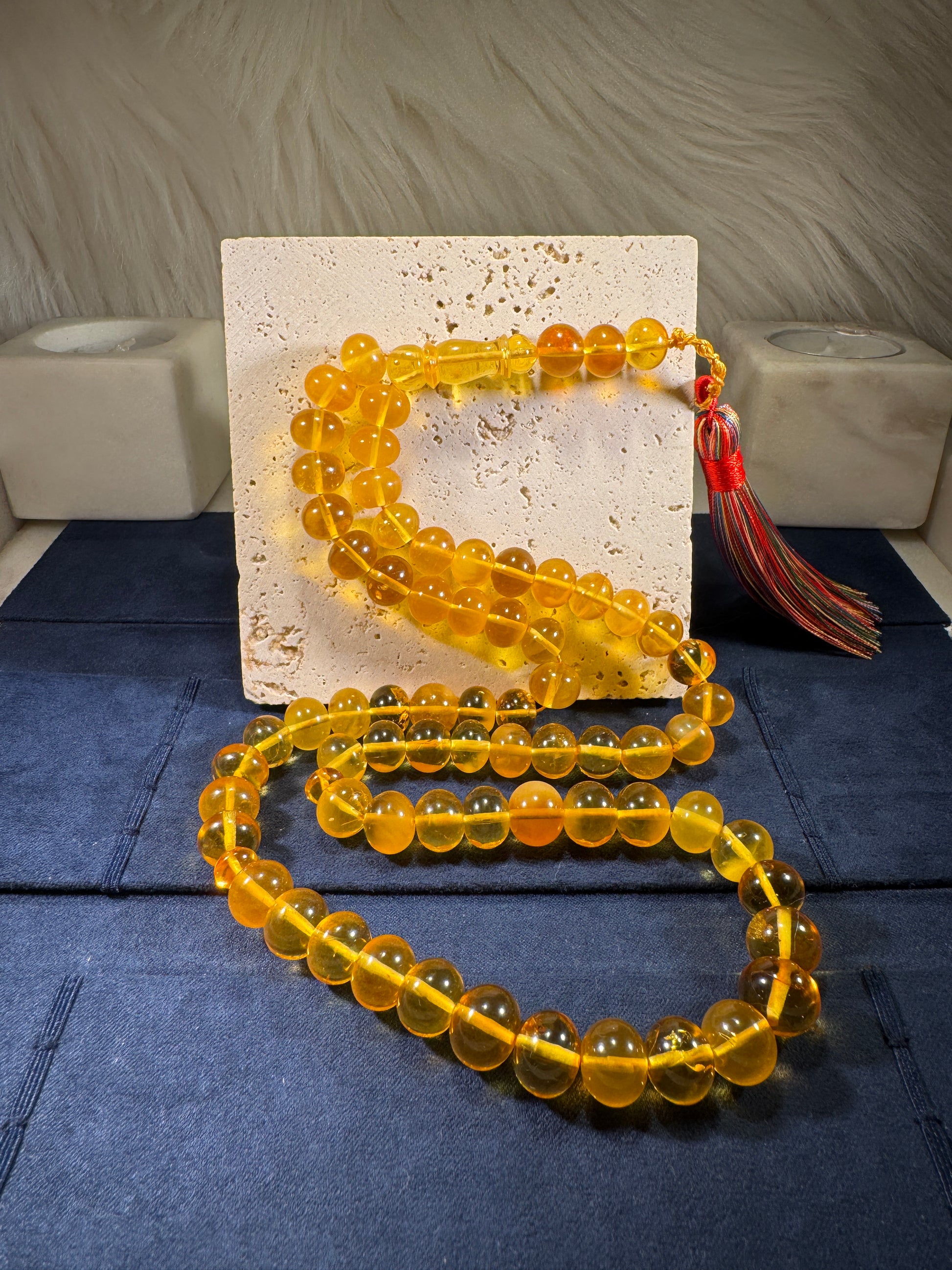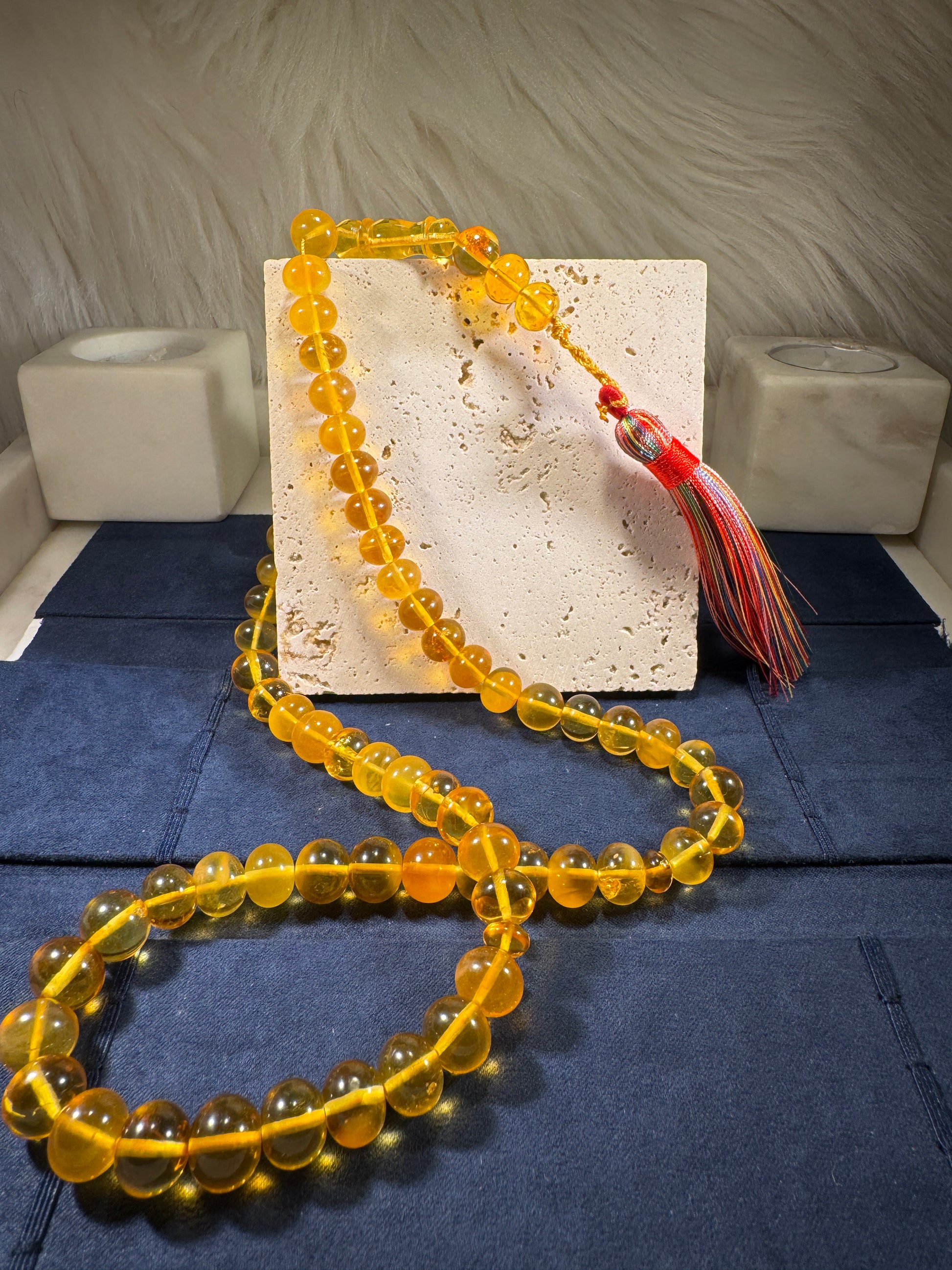 This handcrafted Kaliningrad Amber Masbaha is made from authentic natural amber sourced from the Kaliningrad region. With its bright golden hue, 66+3 perfectly rounded beads, and a vibrant multicolor tassel, itâs a masterpiece of spiritual elegance.