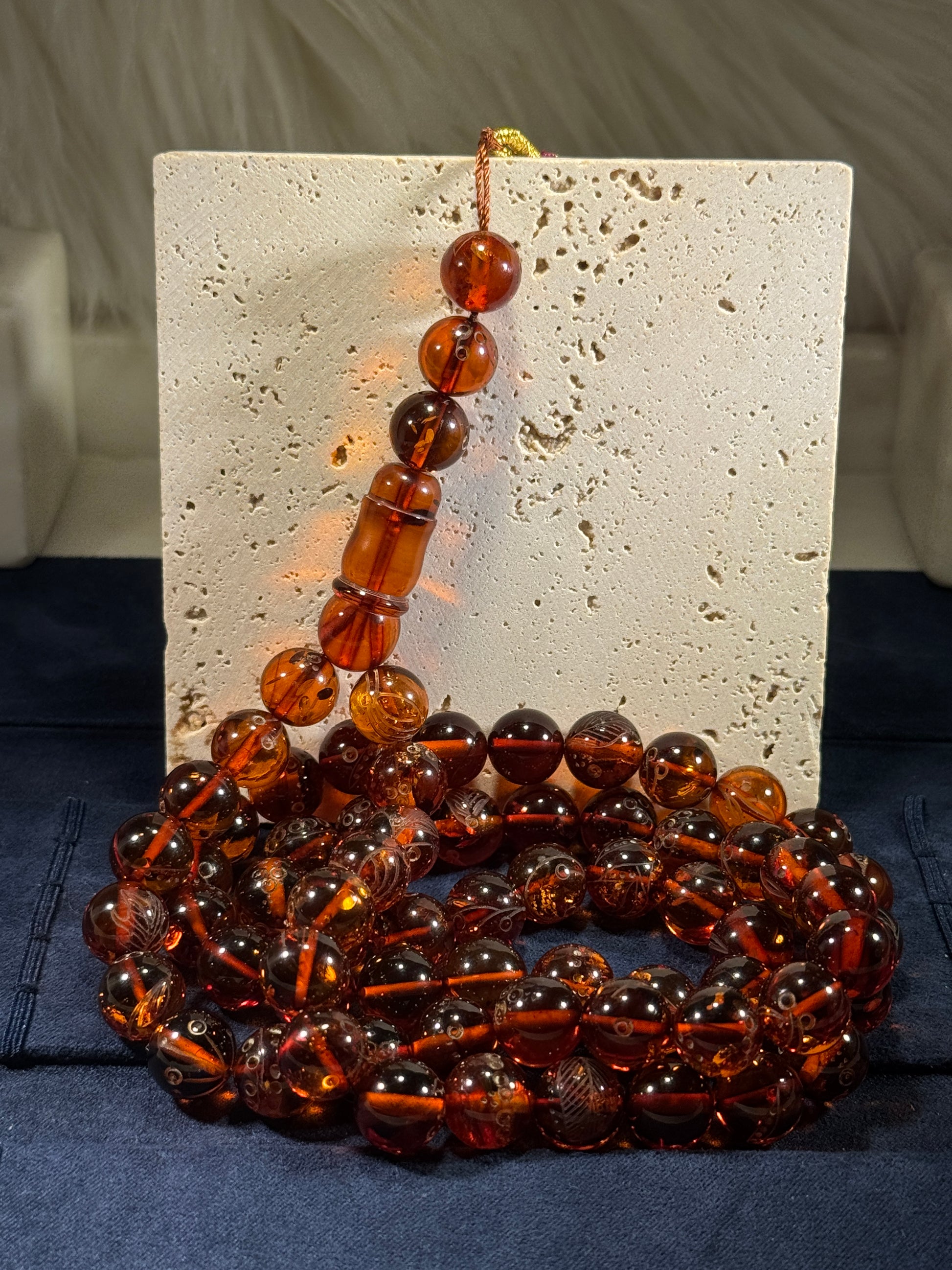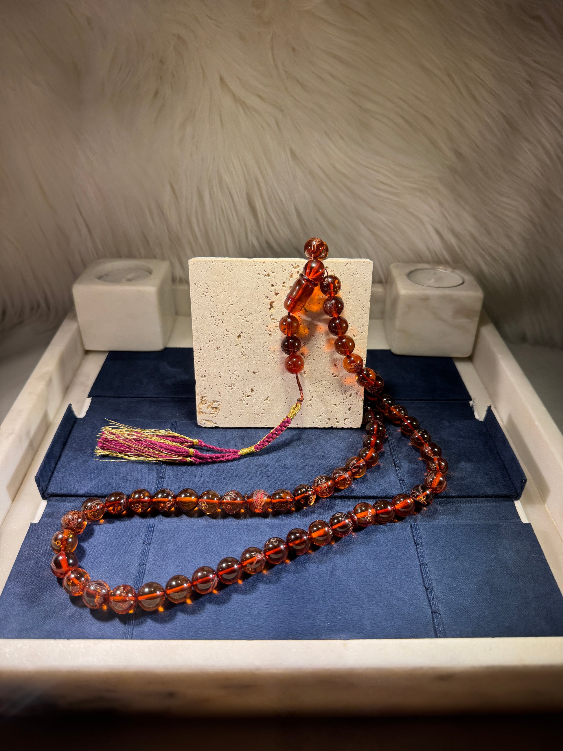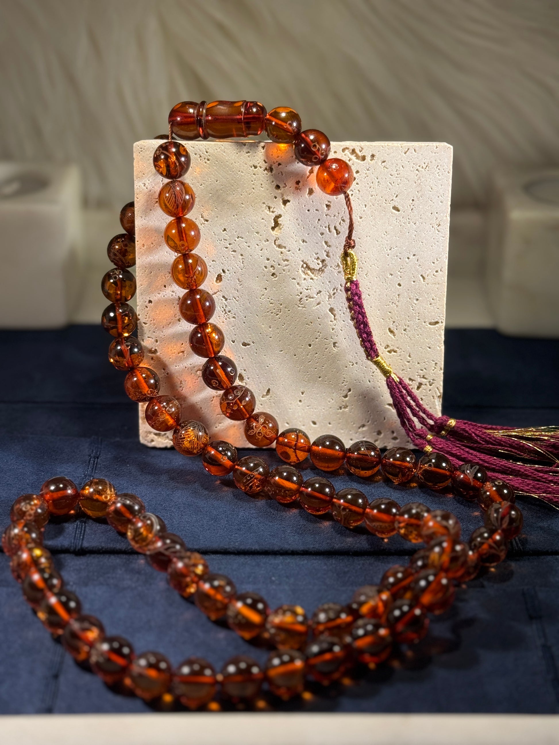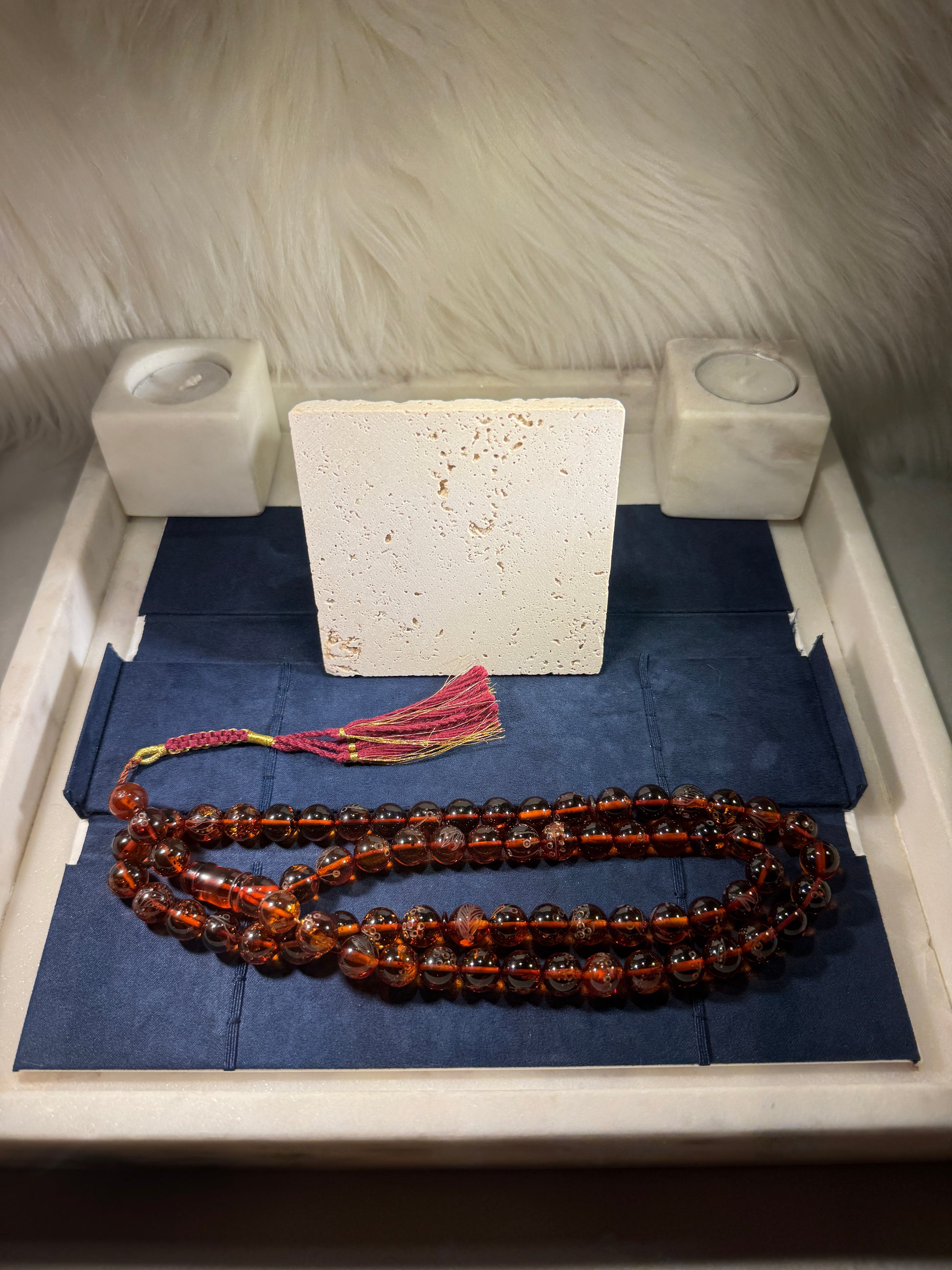 This exquisite masbaha is handcrafted using genuine Russian Amber beads, offering both spiritual and aesthetic value. With 66 primary beads + 3 separator beads, each one measures 12mm in diameter, delivering a perfectly weighted experience at 68 grams. A luxurious and timeless piece for personal dhikr or meaningful gifting.